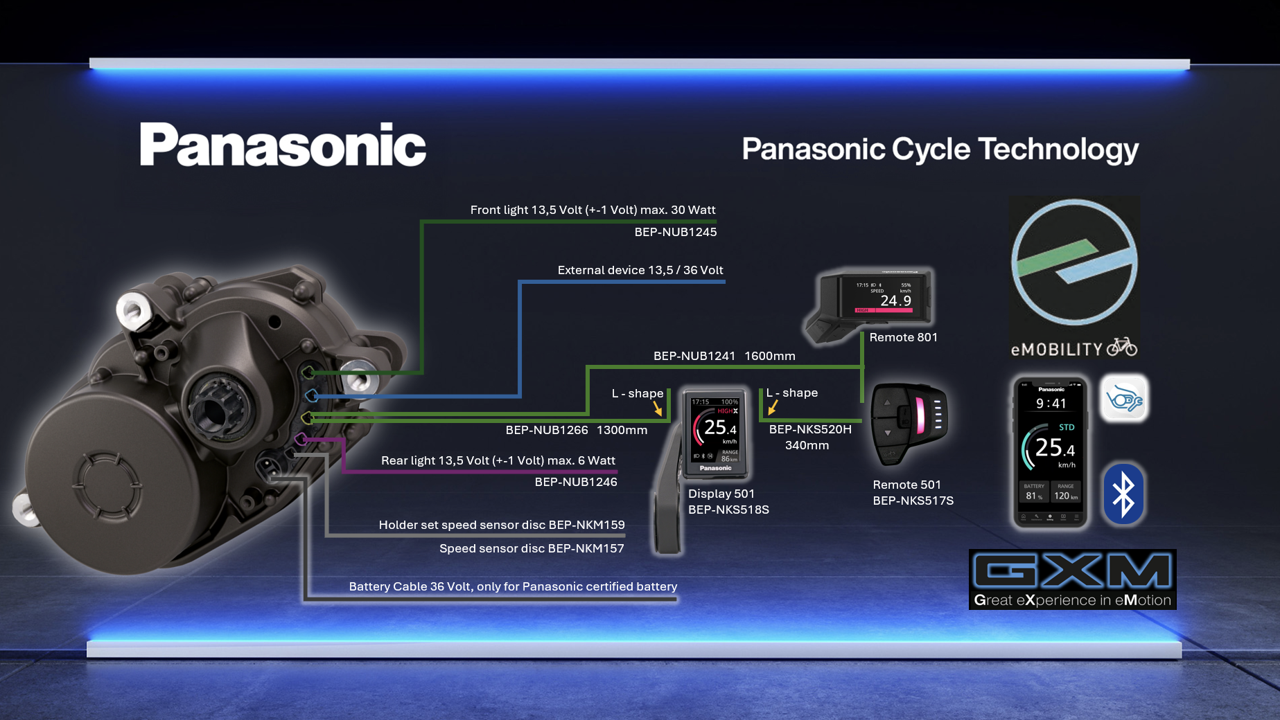 The new Panasonic batteries for the GXM system represent the highest standards in battery safety and will be available in capacities up to 800 Wh.The new Panasonic batteries for the GXM system represent the highest standards in battery safety and will be available in capacities up to 800 Wh.