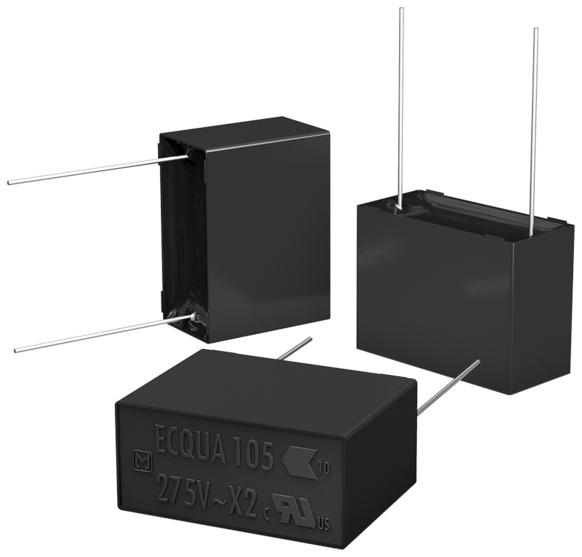 The outstanding feature of Panasonic‘s film capacitors is the intergrated safety function. An original in-house patterned metallization process is the basis of a special structure which performs as a fuse mechanism that prevents the capacitor from experiencing short mode failure. Additionally, it achieves a very stable capacitance level over the capacitor‘s lifetime and therefore guarantees high reliablility. Furthermore, a long lifetime is realized by high temperature and moisture resistance using an originally developed sealing technology.